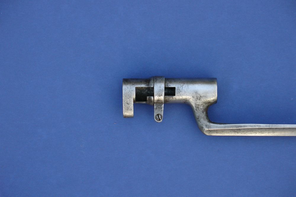 This is an original angular bayonet for the Model Winchester 1866 Musket. It attaches around the front sight so will fit any 1866 musket or military carbine with a button mag (as pictured in the Winchester Book by Madis). Good+ Condition.