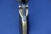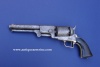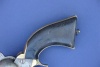 Second Model features: True to 2nd Models, it has the rectangular cylinder stops and flat mainspring with the roller bearing on the hammer. As previously mentioned, it has the squared trigger guard and walnut grips. This was originally sold on the civilian market and not the US Army as the backstrap and trigger guard were originally silver plated. There is also a letter "O" stamped below the serial number...which is commonly found on other civilian market dragoons. The only modification to this gun is the addition of a small brass lanyard ring on the base of the back strap. From previous experience, this practice (which is not uncommon) indicates use by a horse soldier or cavalryman. The lanyard has been there for probably as long as the gun. If you look closely, you'll see a nice patina has formed around the stud and protected the original silver plating on the bottom strap.