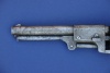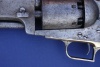 This gun came from an elderly gentleman who lived in the eastern part of North Carolina not far very far from the Albemarle Sound, and he had owned it for over 30 years. It was in rough shape and appeared to have come out of a barn or shed...as it had a very heavy patina and showed evidence of being used as a hammer or tool at some point during its life. With the lanyard on the base of the grip, I can imagine this revolver must have had quite a story to tell. These types of lanyards were added to many Colts in cavalry units during the Civil War. Given it turned up in the South, was a civilian market Colt, and like many southern weapons, showed extensive wear, I couldn't help but wonder if this had belonged to a Confederate soldier. Whatever the history behind this gun, the years had not been kind to this old Colt. When we found it, the action was rusted up, the metal turned to a heavy brown patina showing lots of abuse, and a piece of wood jammed into the wedge slot was all that was holding the barrel to the frame. There were heavy dings in the metal where it had been used as some sort of tool...and some small but bothersome patches of pitting. In spite of the abuse and the terrible state of disrepair it was in, there was one thing that swayed me. This gun still had its original wooden grips and they were still in pretty good shape. Over the years, we've seen a fair number of Dragoons with grips that have been sanded down, busted, had major repairs, and ones with replaced grips. To see this gun with such a good and solid pair of original grips and knowing this more than likely came from the South, we decided to try and save it. After a year and two tours through our gunsmith's shop, the gun is now in good working order and presentable as a good representation of the 2nd Model.