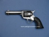 This is a First Generation Colt Single Action Army Revolver in .45 Colt with a standard 4-3/4" Barrel. Desirable antique serial number is in the 174,000 range. Made in 1897. This is a good Colt that is all original and correct. Matching numbers on the frame, trigger guard, and backstrap with sub-assembly numbers on the loading gate matching to the inside of the frame. The front of frame has the transverse release for the cylinder pin which is correct above serials in the 144,000 range. Left side of barrel marked "45 COLT." with two-line Hartford Barrel Address. Left side of frame has rampant Colt logo in a circle with 1871, '72, and '75 patent dates. Checkered hard rubber grips have the simple rampant Colt at the top of each grip panel...also correct for 1897 production. Other features include the later style ejector with the original bronze spring still intact as well as the original hammer with the antique checkering pattern with the long border.