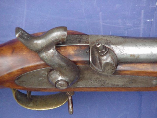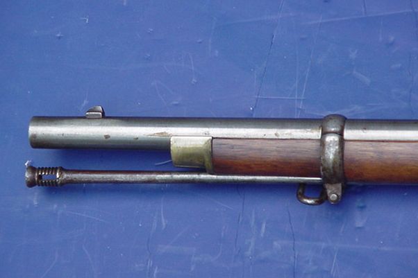 Condition-Wise, its in NRA Antique Good+ to VG Condition. As you can see from the photos, the rifle has been cleaned at some point in its life. Still, it is in remarkably nice shape and well above average with sharp lines, excellent markings, and shows little usage. Given the clean lines, it displays and photographs quite well...for a contrast, just look at our other Barnett P53 rifle which is in untouched attic condition. Atypical of most Confederate Enfields which received hard war-time use, then often use as a shotgun or hunting rifle on a farm followed by decades of storage in a hot humid climate, this rifle shows relatively little use. It hasn't been fired much as there is no wood erosion around the nipple bolster and almost no pitting. The action works perfectly at both full and half cock positions. The bore is in Excellent condition, still bright and shiny with strong 3 groove rifling...even at the muzzle. In spite of the cleaning, the wood is in very good condition and has an attractive tiger-striped pattern or curl. The CH/1 marking is in good condition and located forward of the top tang of the buttplate along the comb of the stock.