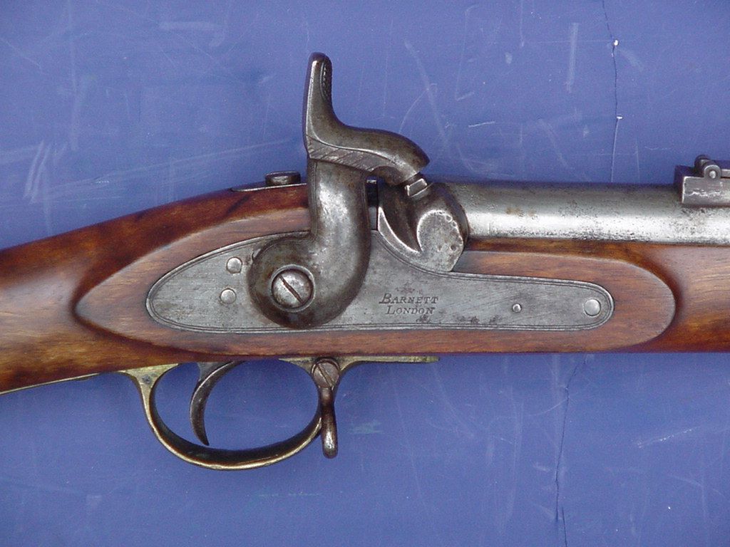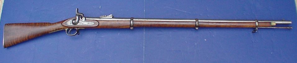 This is a very rare example of a Confederate-Purchased Pattern 1853 Enfield Rifle with Caleb Huse inspection markings. The lock is marked Barnett London with correct London barrel proofs. While Barnett Enfields have a strong association with the Confederacy, the Caleb Huse markings provide definite proof of Confederate purchase...See Page 28 of the 2nd Edition Firearms From Europe by Whisker. Huse's marking is simply a small circle containing the letters "CH" over "1" located on the comb of the stock near the top tang of the buttplate. Standard 39" barrel in .577 Caliber is secured by 3 bands. Original ramrod, brass furniture, sling swivels, and ladder sight. This rifle just recently came from a family in Maine which had owned it for many years. It was probably captured and brought home as a War Trophy.