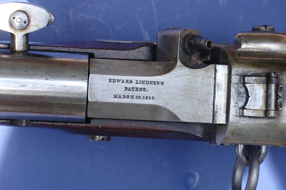 Sadly, the story for the 2nd type Lindner was not as bright as the first model. After the US Gov't placed a second order for more Lindners in April of 1863 with some suggested improvements, Lindner spent considerable time and effort incorporating the newer changes into the next batch. He completed in April 1864. You'd think the Army would have wanted them but with the War winding down and perhaps lots of other breech loaders to choose from like the Henry, Sharps and Spencer, it may have been convenient for them to give Lindner a cold shoulder. They did so by refusing to provide an inspector to approve the guns resulting in the Army never taking possession of them. Ironically, there were several US Inspectors at the Amoskeag plant where the 2nd Models had just been completed inspecting other contracts. After a lengthy court battle, which Lindner lost, he was forced to sell his forgotten and orphaned 2nd Models most likely to France in 1870 for the Franco Prussian War. As a result, our guess is that you'll probably find more 2nd Models over in Europe today.