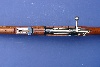 Overall, it's in NRA Antique Excellent++ Condition to almost Mint. The frame has 99% deep original blue with a very nice Chilean crest on top of the receiver shank. Bolt still has 98% bright original polish. If you look closely at the pictures, you can still see a faint yellow sheen of the original factory grease covering the bright metal. The bolt release still has 99%++ original fire blue. Barrel and bands have 99%++ original blue while the band springs show nearly all their bright vivid fire blue. Excellent screws are all unturned and still have almost all their original fire blue intact. Note the magazine charger still shows almost all of its original fire blue with only a light scratch from the bolt sliding across. Rear sight has almost all of its original blue, bright polish, and tempered straw colors on the ladder spring. The buttplate has a couple of spots where the original blue is missing...and grades to 90% original finish. The wood is in Excellent condition overall and still a stunning light orange-brown European walnut with almost no darkening. The stock is in Fine+ condition...really Excellent overall except for several small dings and a couple of gouges, the worst of which is on the handguard near the rear sight (see photo). These types of marks are quite typical of many Model 1895's...both in terms of pattern and distinctive marks that were made. The conclusion I've made is that these were not from usage but from long-term storage in crates where it came into contact with other unissued Model 1895's. Aside from that, the wood is great with 98% original oil finish intact. No chips, cracks, or repairs of any kind. Bore is mint...action is mint. A very nice Model 1895 and one of the nicest pre-1898 antique rifles money can buy in today's market.