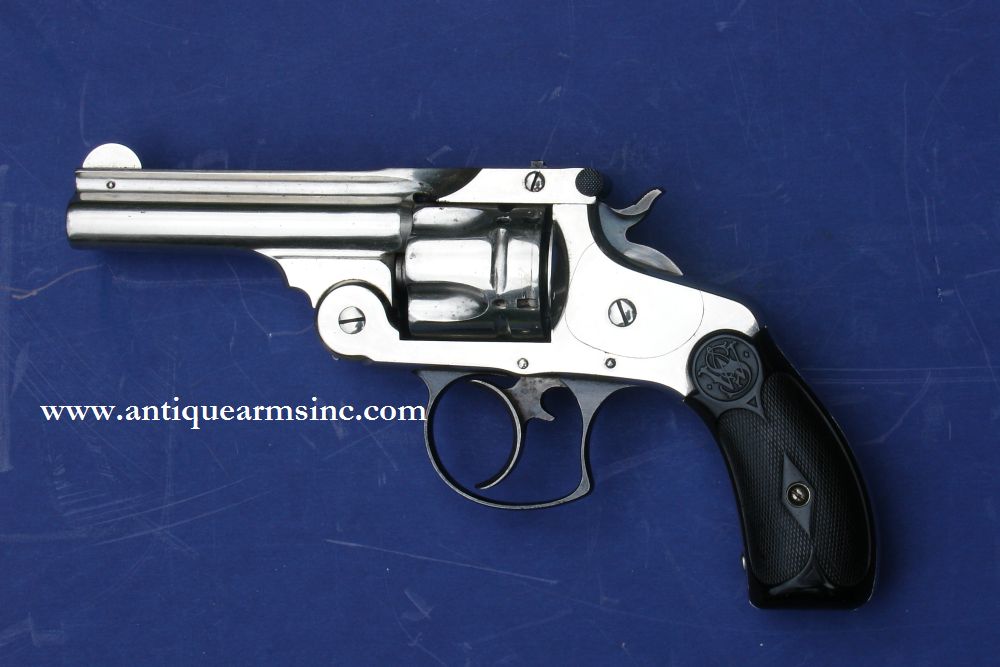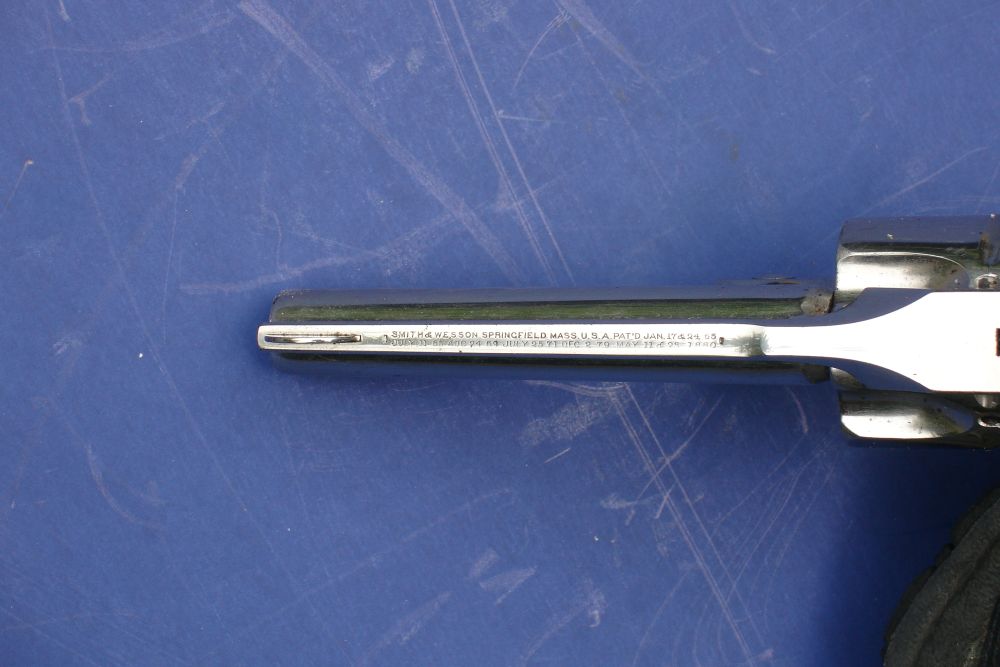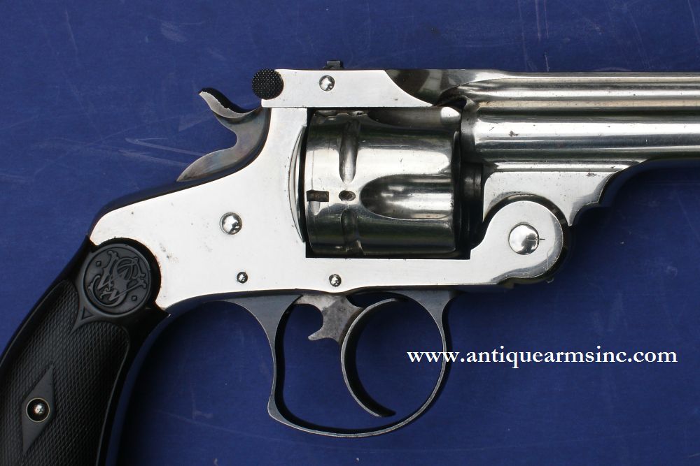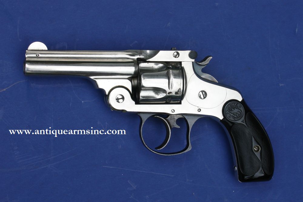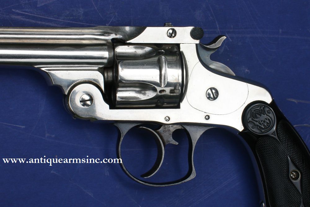 Disclaimer: Over the years, many of you, my loyal customers have written and called about how much you enjoy reading our descriptions. To some of you, I know these can get a bit verbose, but our main intent has been to share knowledge with other collectors as well as introducing new collectors to an exciting field of not just antique weaponry, but the history that surrounds us. Too often, we only see an old gun like this S&W as an object placed in front of us, never fully realizing that history that surrounds them...or perhaps picturing the nicely dressed Victorian era gentleman with sideburns and handle-bar mustache. Perhaps wearing a top hat or derby while strolling down some cobblestone with this revolver tucked neatly into his vest by his chained pocket watch. Or maybe it just stayed tucked in a drawer and never saw a rainy day. We wrote just for fun and have done very little research on this...based strictly on observations so please take this with a grain of salt as this is coming from a mere antique gun dealer and not an award-winning author whose just spent 20 years of research before publishing a book. This info is free and you get what you pay for if you know what I mean!