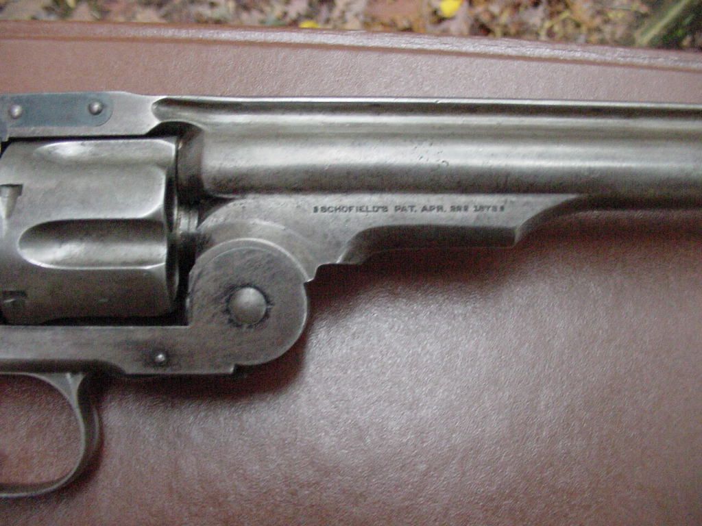 This is a nice clean example of the S&W 2nd Model Schofield revolver. Standard 7" barrel with six shot cylinder in caliber .45 S&W. Manufactured only 3 years from 1875-1877 with a total production of just under 9,000 units, the Schofield revolver saw quite a bit of use throughout the American frontier including heavy use with the 4th US Cavalry during the Geronimo campaign, the famed Buffalo soldiers of the 9th and 10th Cavarly, as well as plenty of Civilian and outlaw use. Frank and Jesse James as well as the Younger Brothers were reputed to have carried the Schofield as well as Marshall Bill Tilghman. See Flayderman's 8th Ed. Page 205.