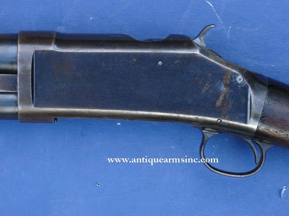 The 1893 was Winchester's first pump action shotgun and was originally designed for black powder shells. However, by the late 1890's shells loaded with smokeless powder were becoming more and more common. Unfortunately, the original Model 1893 was not strong enough to handle these stronger loads. Winchester introduced an improved version of the 1893 to handle these new smokeless rounds which it re-designated the Model 1897. Fearing lawsuits, Winchester issued one of the first national product recalls in the United States, encouraging all owners of the Model 1893 to return their guns to the factory in exchange for brand new Model 1897's. Of the approximately 34,000 units produced, many were returned and scrapped by Winchester. Today, while it is not impossible to find a surviving Model 1893, they are far from common and it can be a challenge to locate survivors in decent condition. Most of the ones we've encountered appear to have been well-used with little or no finish remaining.