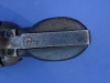 Overall Condition grades to NRA Antique Fair. The metal surfaces are a frosty gray patina with scattered light to moderate pitting. I'd say whoever found it used a heavy wire brush to remove the rust but they made no attempt to polish or smooth out the surfaces which is why the markings are so nice. Over the years, I've seen a number of these early well-worn Ainsworths which have had so much cleaning done to them that they are barely recognizable. This one isn't pretty but it's righteous and hasn't been ruined beyond recognition. In Kopec's words, it is a "colorful old U.S. Cavalry revolver"...in "near relic condition". The only thing missing on it was the cylinder pin retaining screw and the early ejector housing which Kopec notes was probably missing for a long time. We put an original housing on it ( a later 1st generation housing with an original spring and rod with what is I believe a repro of the early bullseye knob) for display purposes. This will come with the gun but I'm sure an original early housing could be procured with some dedicated scrounging. The action is in Very Good working order...full/half cock, cylinder locks, everything works. The bore is in surprisingly nice shape for a relic and would grade it no less than Good+ with very decent rifling. The hammer has sharp checkering in the early longer pattern. Original Front Sight. Frame has the correct early style small "U.S." next to 1871 and 1872 patent dates. To date, I have found several small "A" inspector markings for US Gov't inspector OW Ainsworth. These are located on the top of the backstrap, underneath the barrel, side of the cylinder, on the butt of the grip, and bottom of the barrel with the US Gov't "P" ordnance proofmark. We were able to get photos of most of these. There is also the correct letter "C" on the back of the frame just above the hole for the firing pin. Cylinder pin appears to be the original. Grips are remarkably solid for a gun left out in the elements for so long. Back East, these wouldn't have lasted long so most likely, this was lost somewhere out West. They are weathered and shrunken but solid with only one chip missing off the lower left corner. The Ainsworth "A" is still visible on the bottom (see photo) and if you look closely, you can see a hint of the original border that went around the OWA cartouche at the bottom of the left side. See photo. Also evident is some light flattening off the sides caused by chafing in a leather holster...common on cavalry guns. There are four notches at the base of the left grip...also mentioned in Kopec's letter. A really neat old early production Colt Single Action from the Indian Wars that was there!