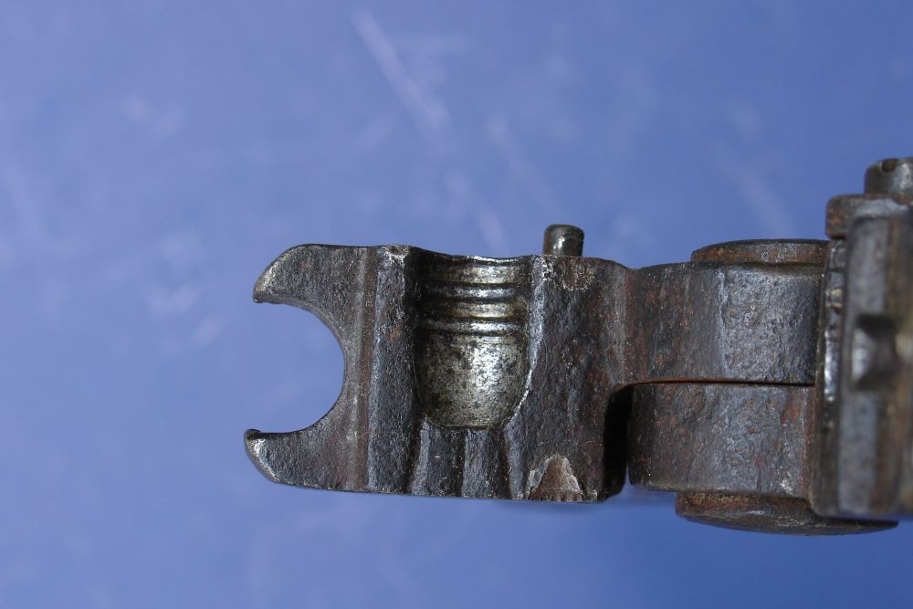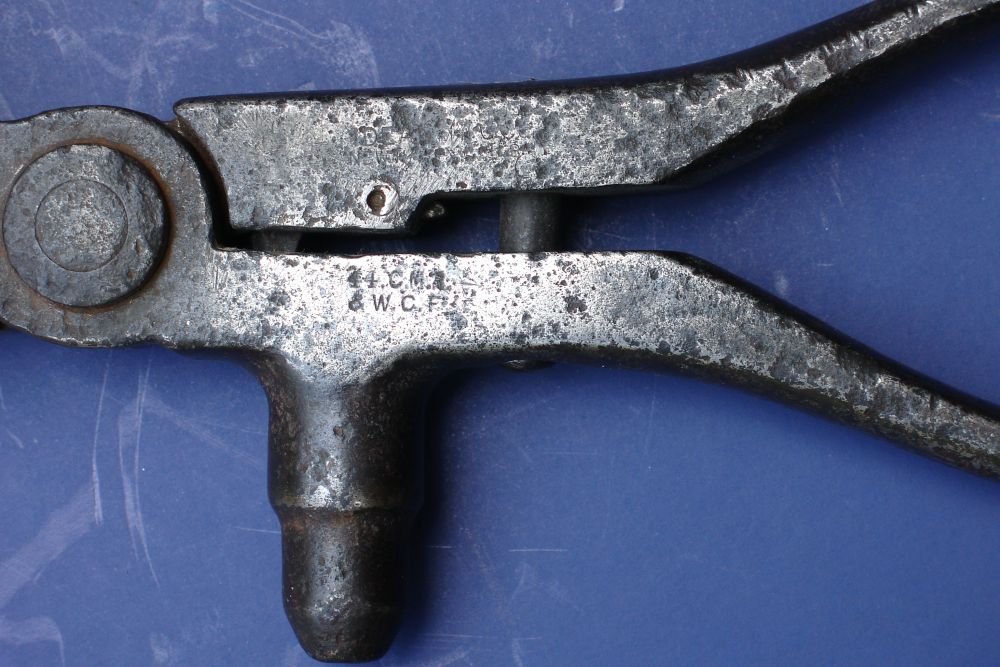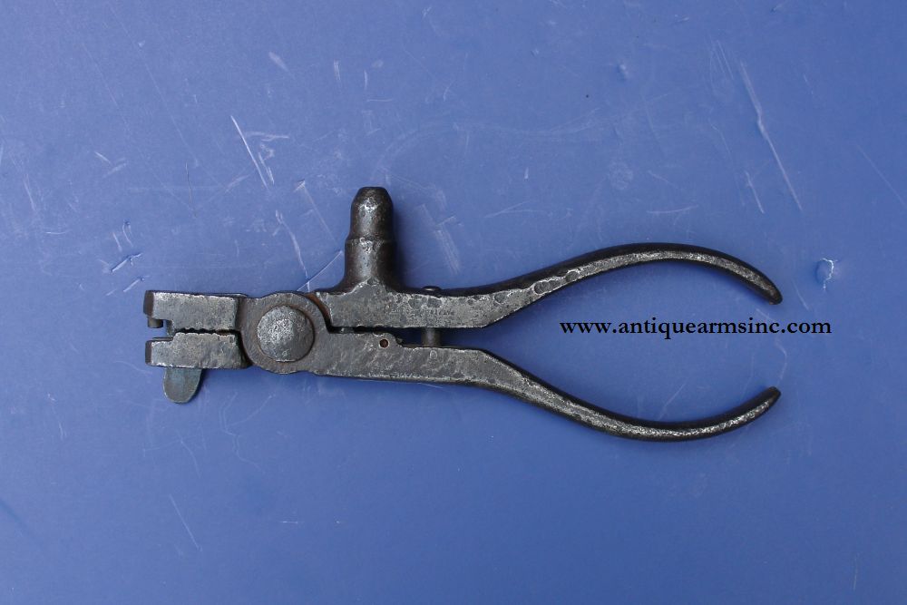 These little Ideal tools marked for Colt are scarcer than hen's teeth. Handle is clearly marked "44 C.M.R. & W.C.F." which stands for Colt Magazine Rifle and Winchester Center Fire. Colt only built two rifles with magazines...the Burgess lever action and the Lightning pump action rifles. Both rifles were chambered in the 44-40 which this tool would have been suited for. Also, the Winchester Models 1873 and 1892 were also chambered in this caliber...hence the "WCF" marking. Overall condition is NRA Antique Fair condition with a heavy brown patina. Markings are worn in places but the scarce Colt and Win. caliber markings are intact and completely legible. Good working condition with a fair mold cavity. Complete with sprue cutter.